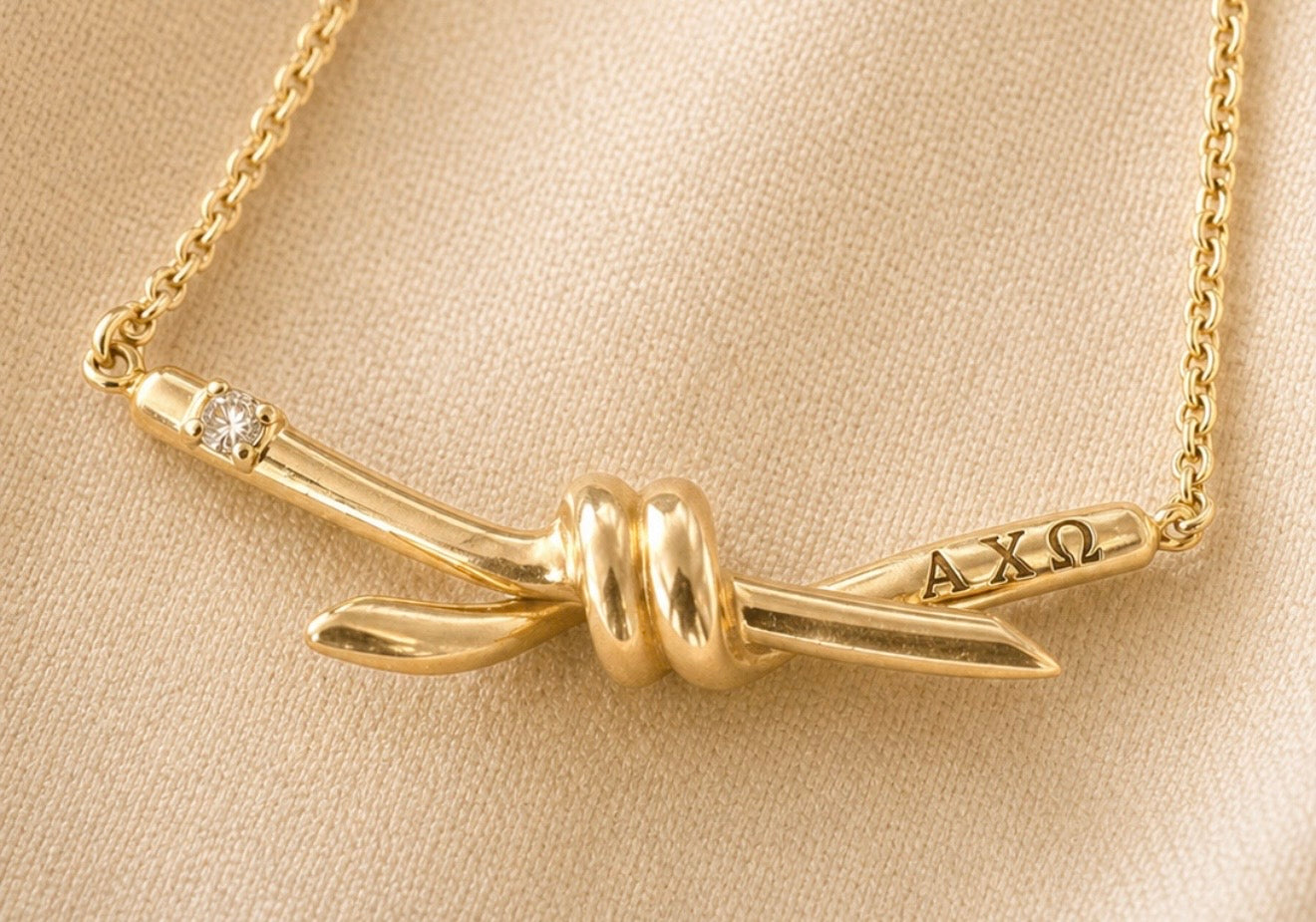 The Ties That Bind pendant represents bonds formed in trust, tradition and shared experiences. Designed to be worn alone, stacked from class to cocktails at every chapter.